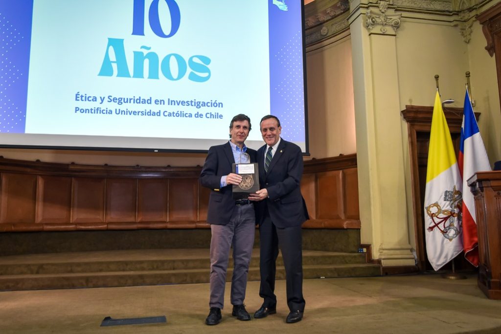 La Pontificia Universidad Católica de Chile celebró el décimo aniversario de su Unidad de Ética y Seguridad en Investigación con una ceremonia que congregó a autoridades académicas, investigadores y miembros de comités éticos. En el evento, el rector Ignacio Sánchez destacó el papel esencial de la unidad en el desarrollo de una cultura de integridad y seguridad en la investigación, subrayando que la ética no solo protege a las personas, sino también a todos los seres vivos y al ambiente natural. El rector enfatizó que la ética y seguridad en investigación deben acompañar cada proceso científico, consolidando el compromiso de la universidad con la excelencia, la responsabilidad pública y el respeto hacia el entorno.